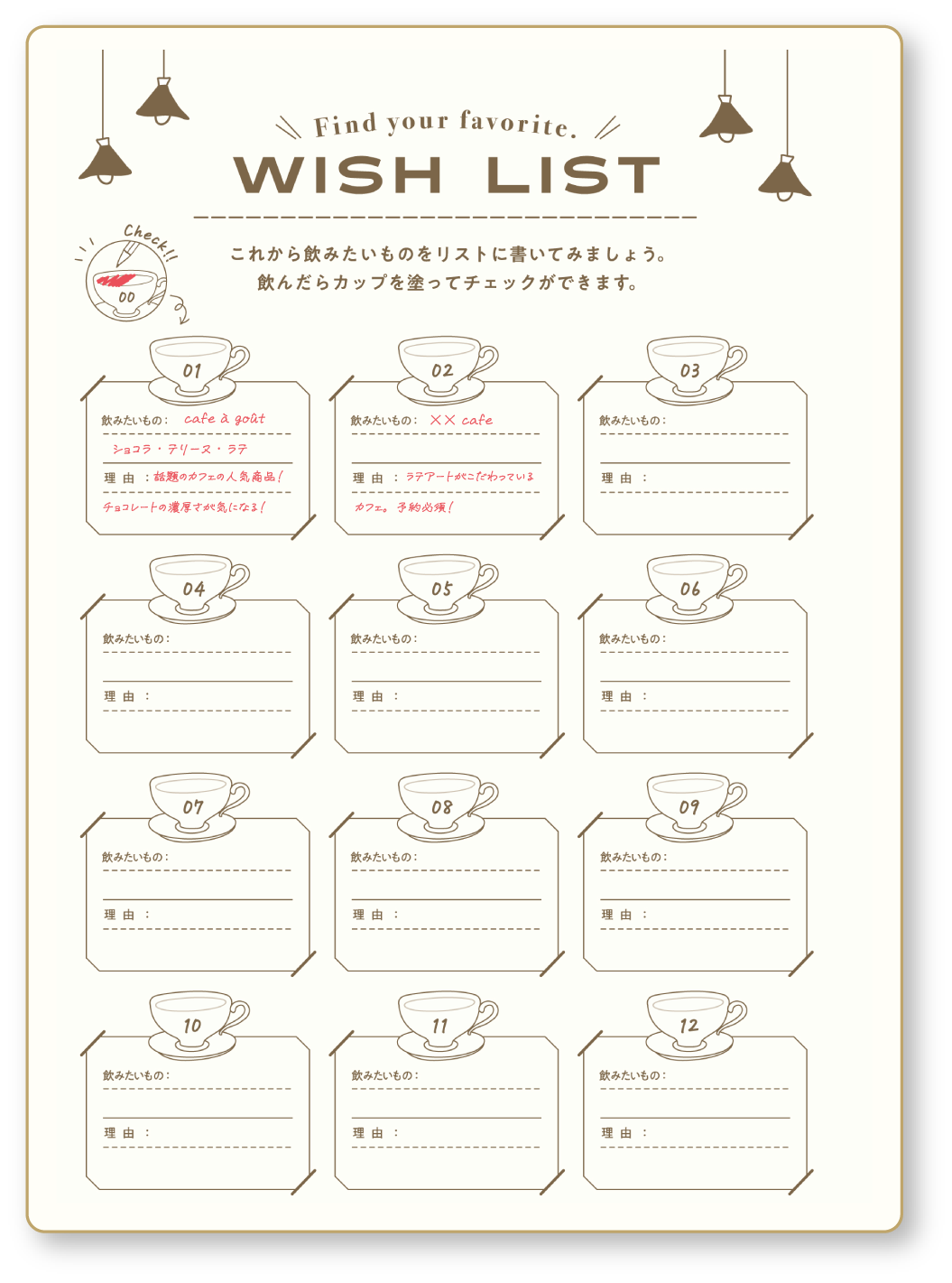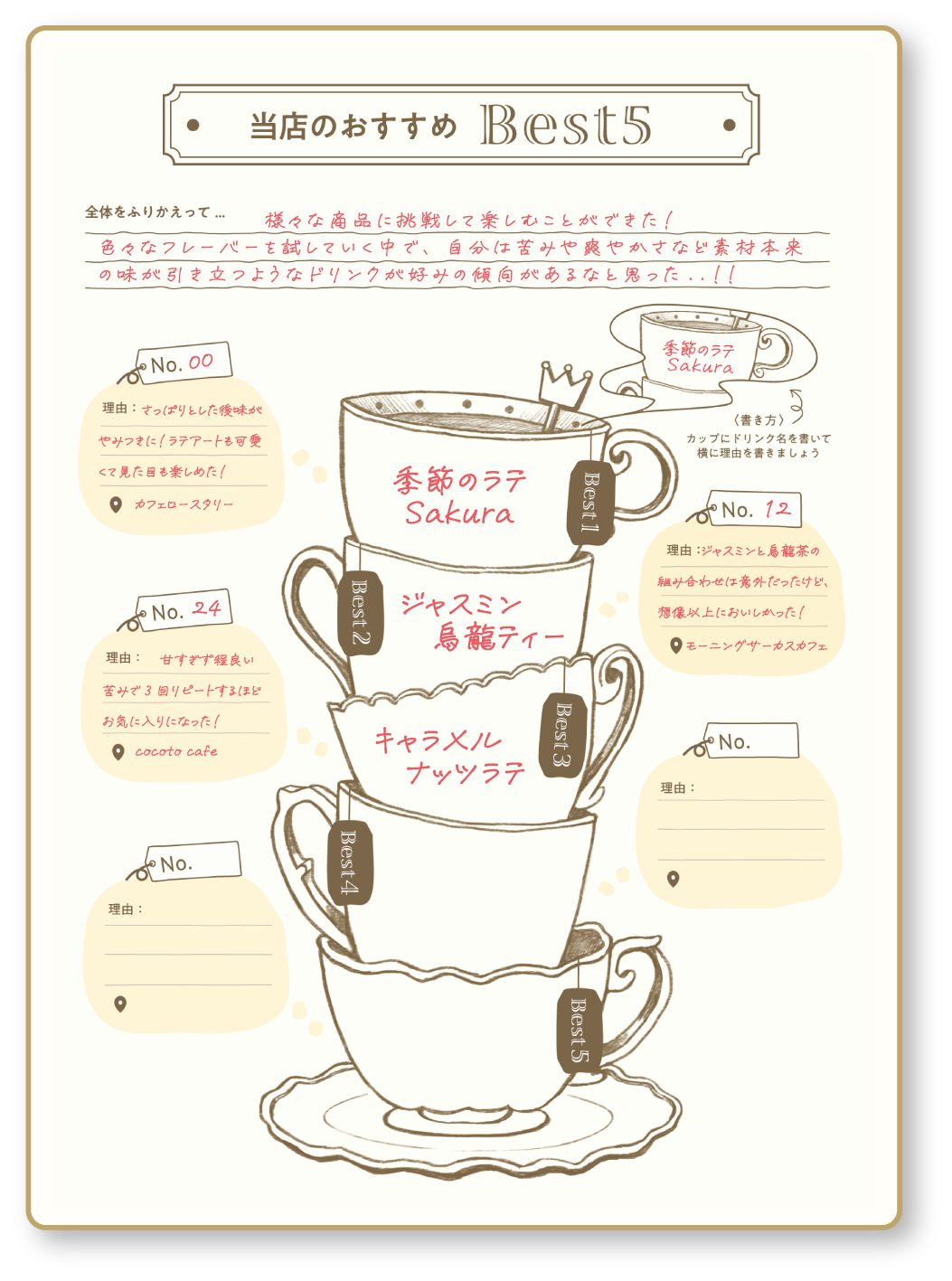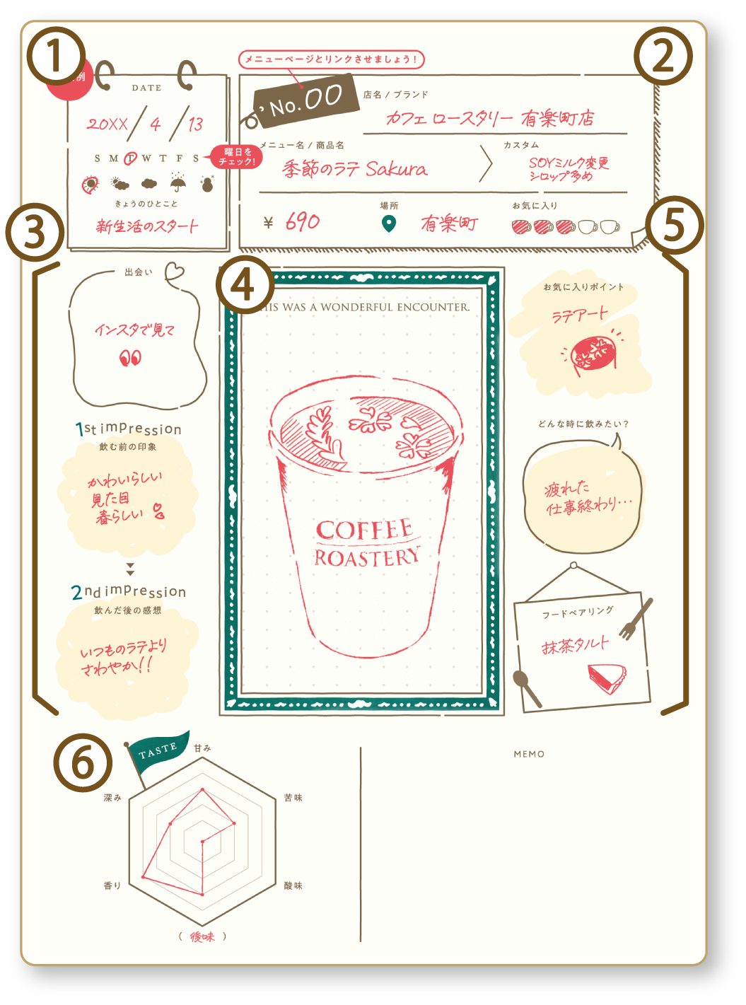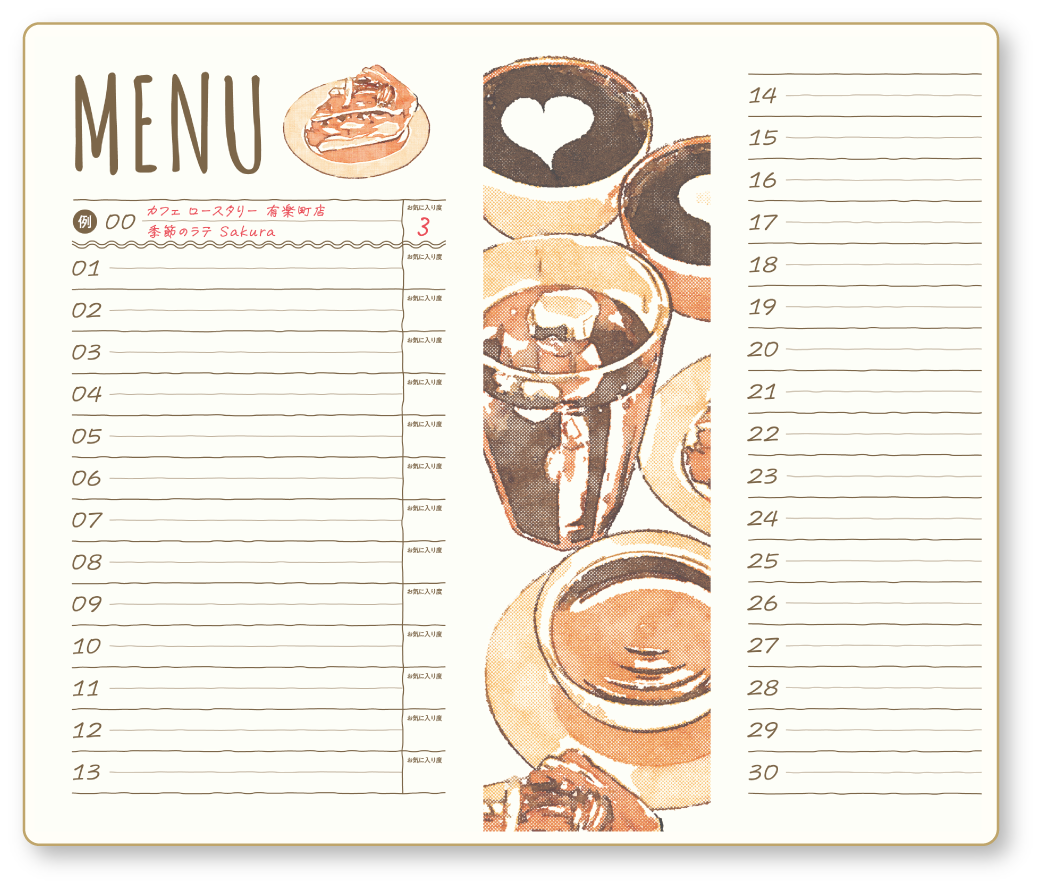 お気に入りのカフェや、心に残る一杯の記憶を綴りましょう。